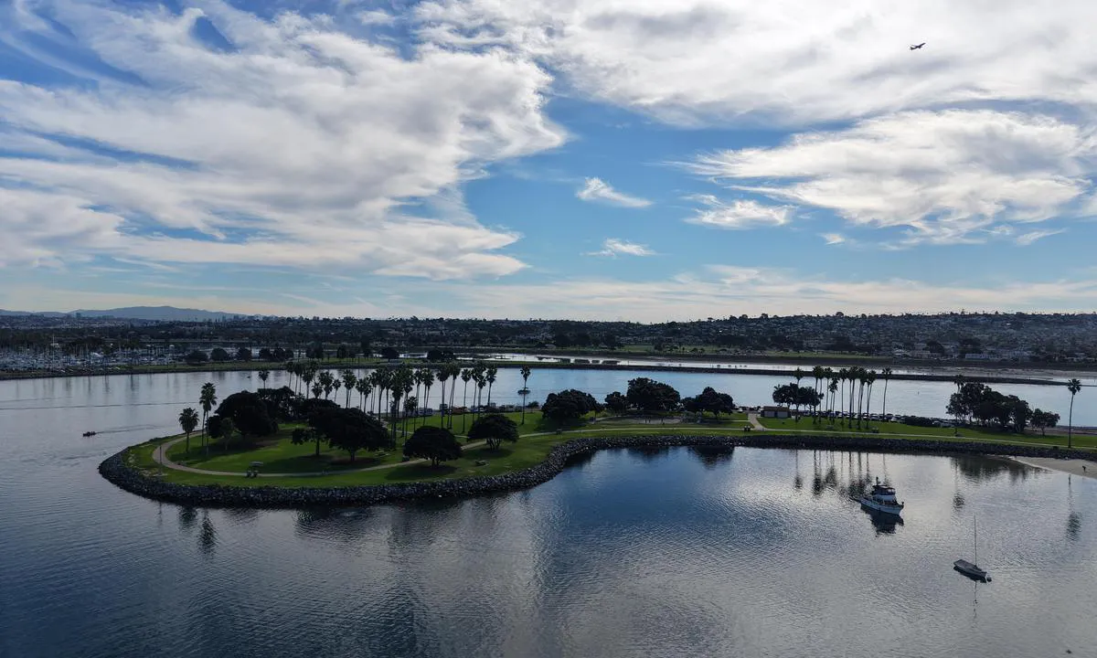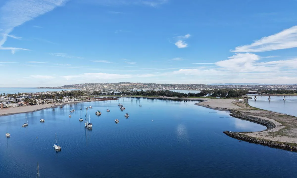 Dette er et flott sted å ankre, spesielt når havforholdene er røffe og du ikke ønsker å forlate San Diego Bay. Overnattingsforankringen er merket rett vest for golfbanen med gule bøyer. Det er ofte ganske mange båter i det lille området, spesielt i fine helger, og du kan kanskje ikke legge ned så mye kjetting som du ønsker, men sandbunnen er god for ankring, og vi har aldri dratt ankret selv når vinden tar seg opp. Du kan bli opp til 72 timer, men du må gjøre en reservasjon med https://www.portofsandiego.org/. Selv om du skal gjøre reservasjoner minst 24 timer i forveien, har min kone klart å få samme-dags reservasjoner når havet har forhindret oss fra å dra ut av bukten og gå nordover. Det er en fin offentlig brygge du kan fortøye ved ved båtutsettet mot vest. Det er også en veldig fin utleiebrygge du kan fortøye ved i den nordvestlige enden. Avgiften er $10, men jollen din er trygg innenfor et sikret område, så du trenger ikke bekymre deg om du skal ta en tur rundt Coronado.