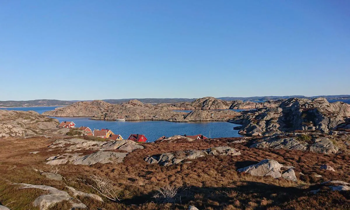 Fin utsikt utover skjærgården fra toppen av øyen, utover det har den ikke så mye å by på. Det er en privat hytte ca midt på øyen, ellers ingen bebyggelse.