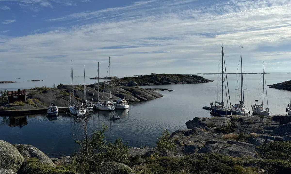 Det finnes en brygge å legge til ved, ellers er det bra dybde ved klippene på motsatt side